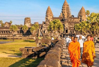 Commencez la journée par un lever de soleil spectaculaire sur Angkor Wat, symbole emblématique du Cambodge. Explorez les galeries sculptées et admirez les bas-reliefs qui racontent l’histoire des rois khmers. Votre guide vous fera découvrir les légendes et les symboles cachés de chaque détail. Une immersion intense et mémorable, parfaite pour un circuit court et confortable.